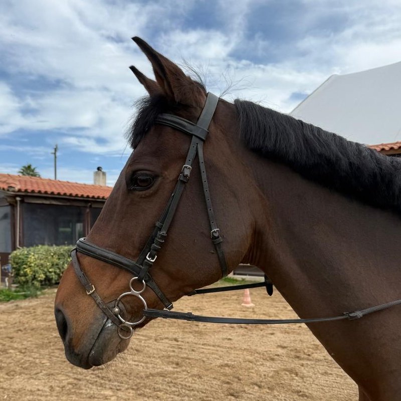 At 17 years and old and 1.68m, he has competed in numerous lower-level show jumping and dressage competitions. He belonged and was the first horse of a Greek National Champion rider whom he helped with her first steps in the competitive equestrian scene. Afterwards, her family and her (in their honour) offered him to our Academy so that he can continue providing his skills to up-and-coming students and athletes.